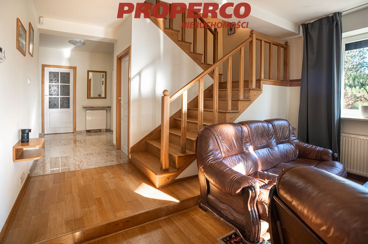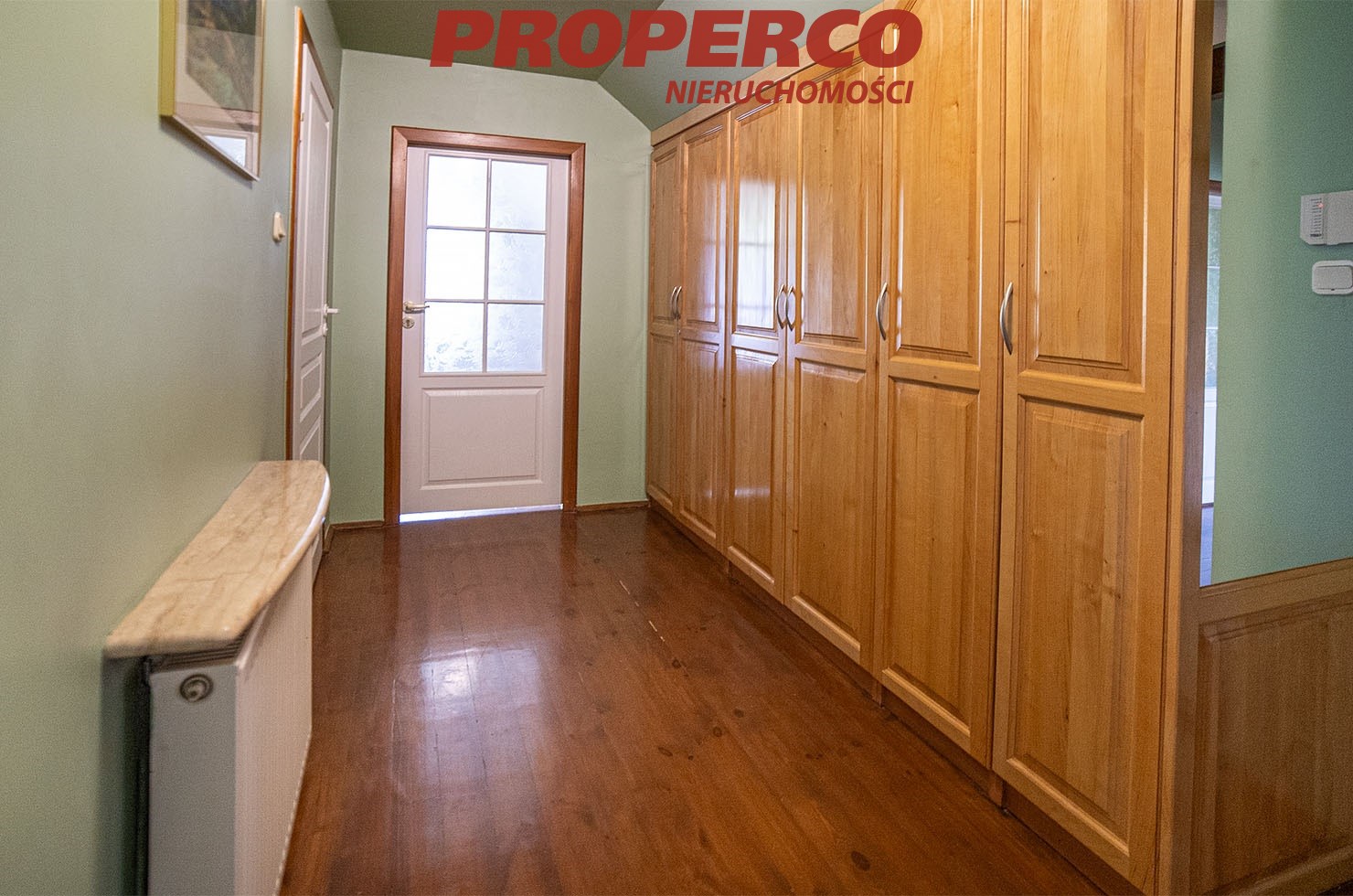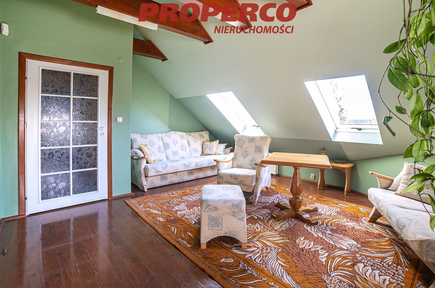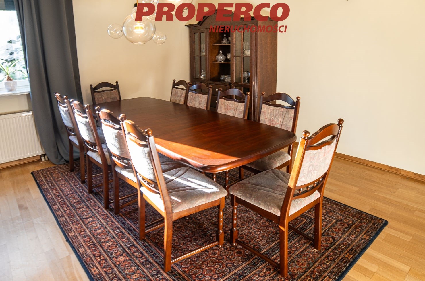 For sale, a detached house with a usable area of approximately 260 sqm, located in Brzeziny. The property is ideal for agrotourism activities. It is conveniently located with a bus stop nearby (500m), two grocery stores, a pizzeria, a hair salon, a florist, a school, and a kindergarten. Additionally, there is a church, a swimming pool, and a reservoir in Morawica at a distance of about 3.5 km. The property is approximately 15 km from the center of Kielce.
