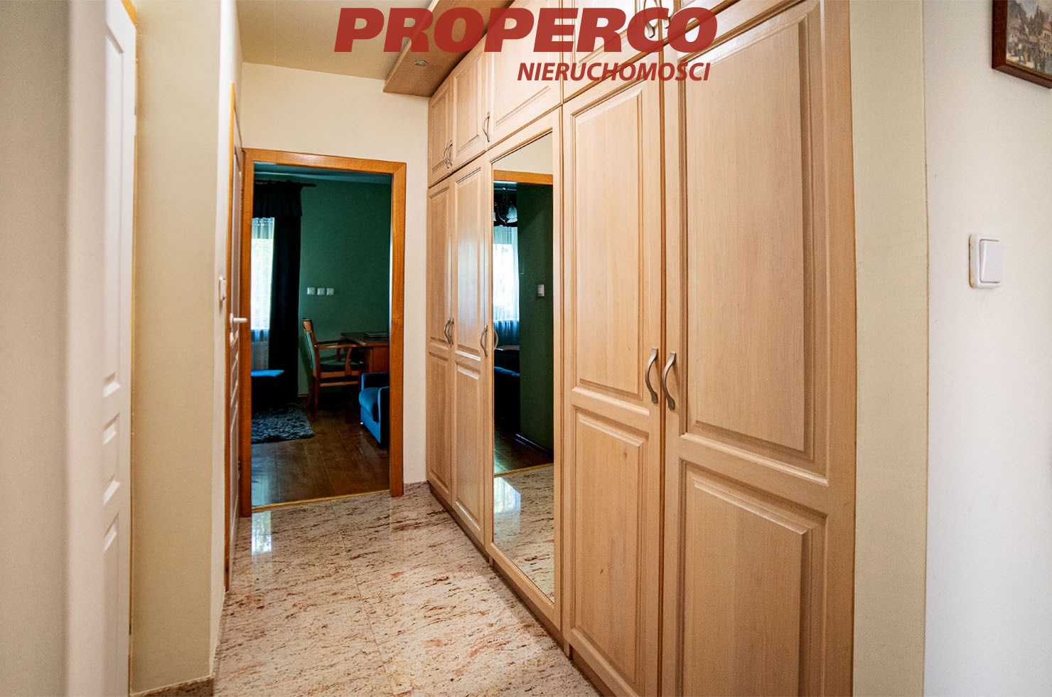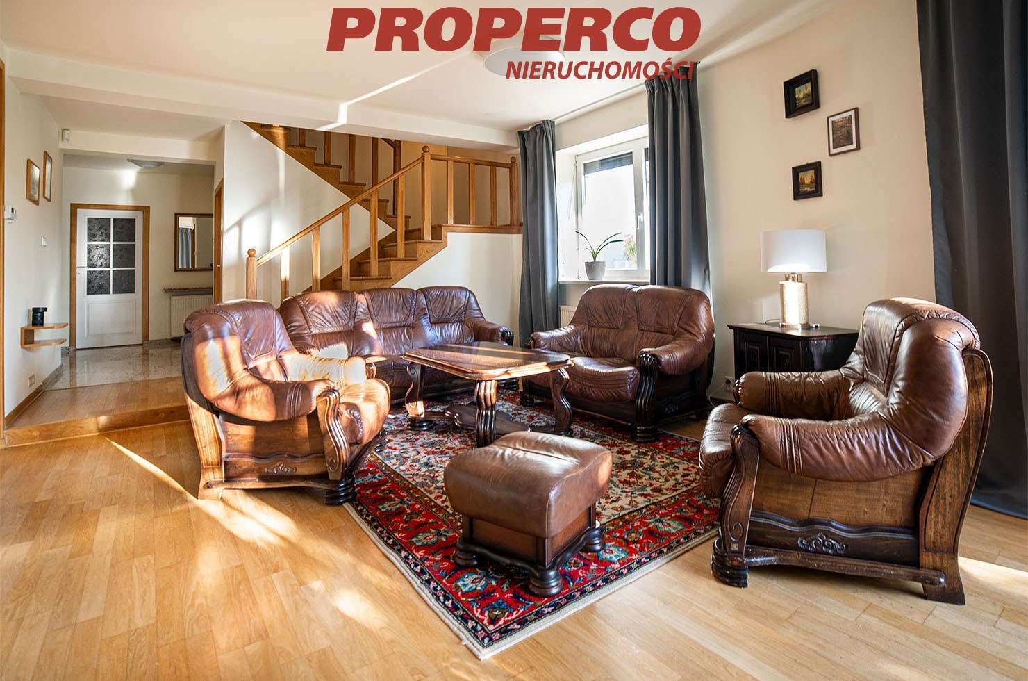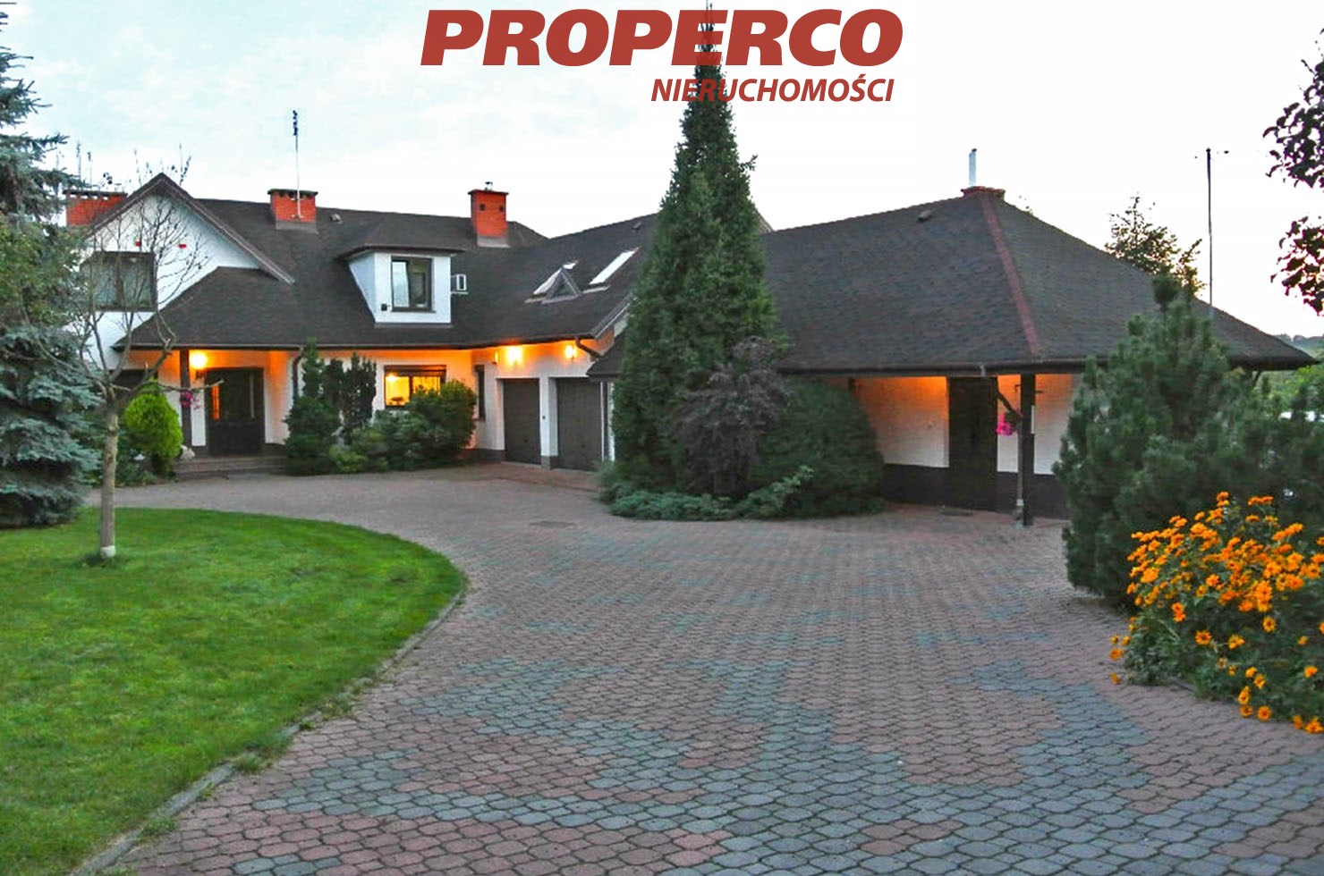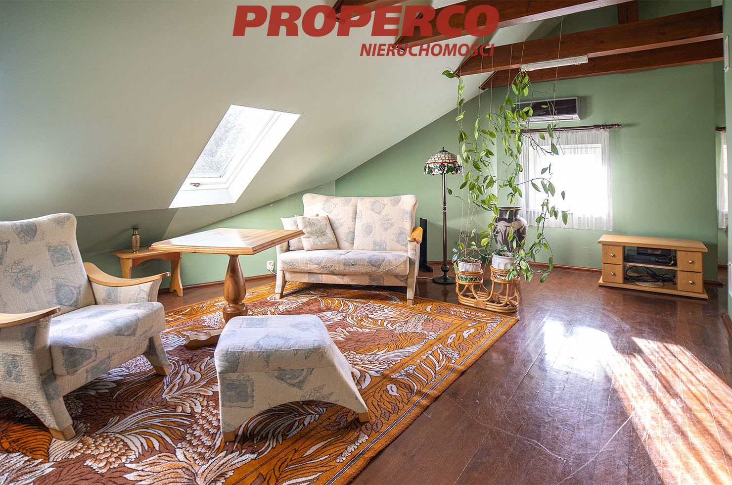 For sale, a detached house with a usable area of approximately 260 sqm, located in Brzeziny. The property is ideal for agrotourism activities. It is conveniently located with a bus stop nearby (500m), two grocery stores, a pizzeria, a hair salon, a florist, a school, and a kindergarten. Additionally, there is a church, a swimming pool, and a reservoir in Morawica at a distance of about 3.5 km. The property is approximately 15 km from the center of Kielce.