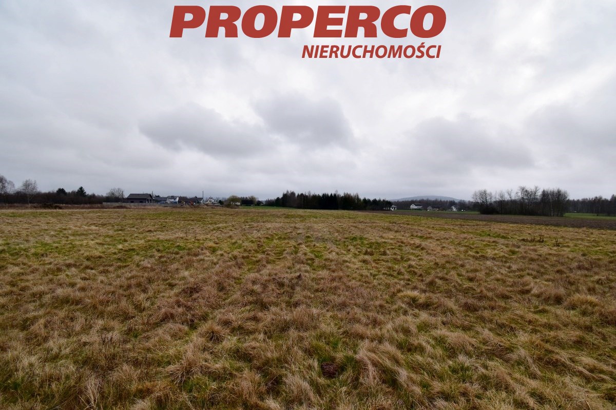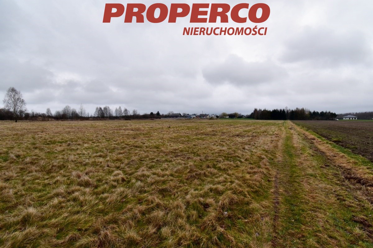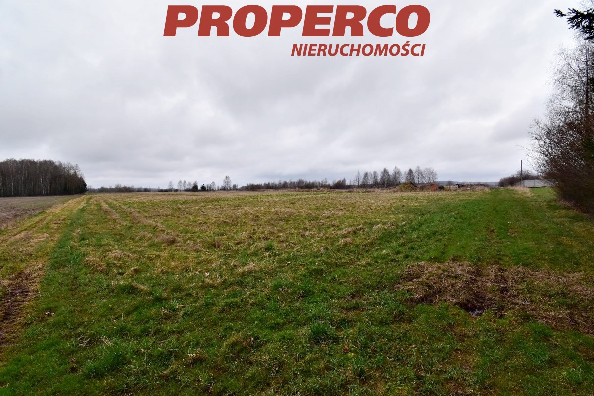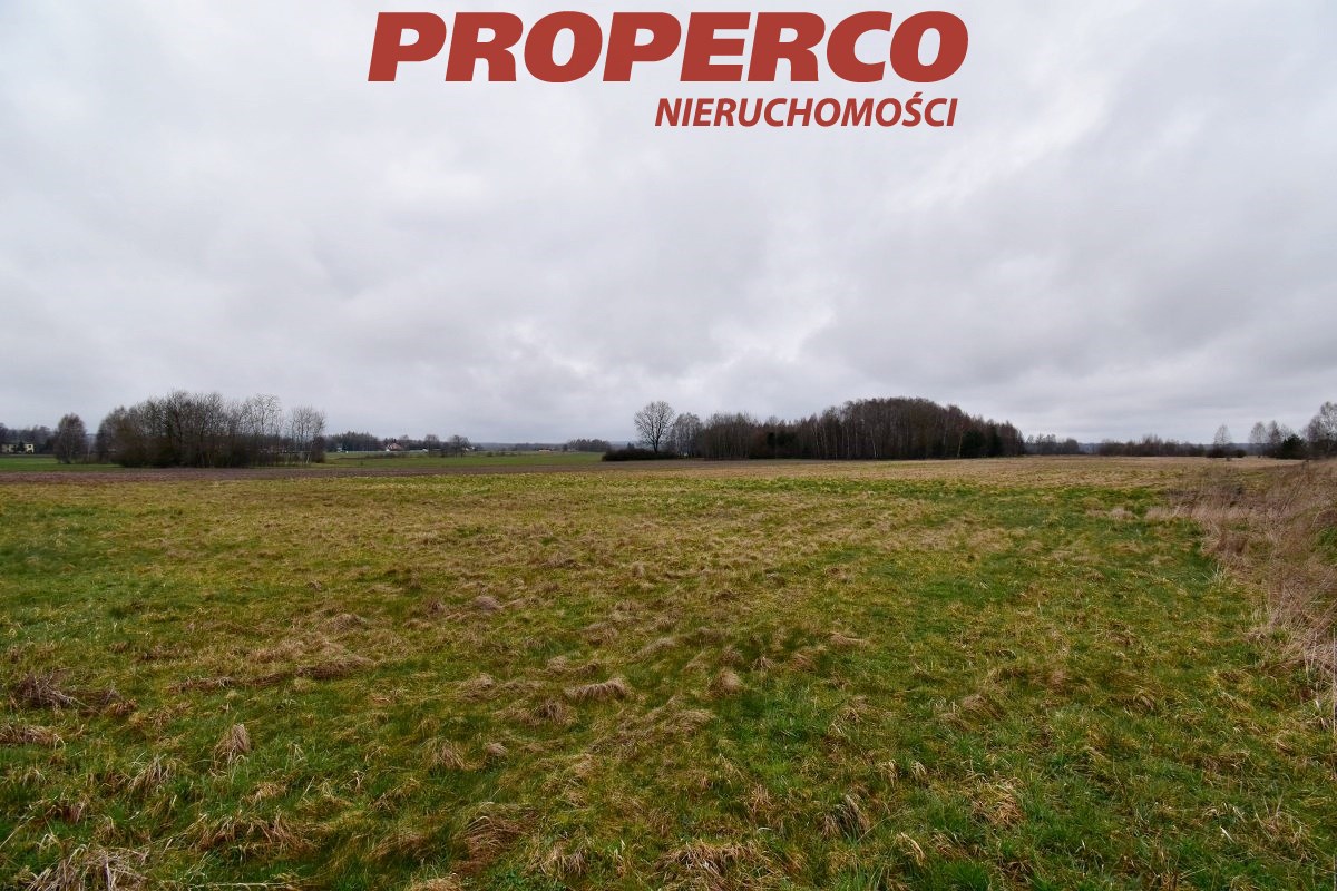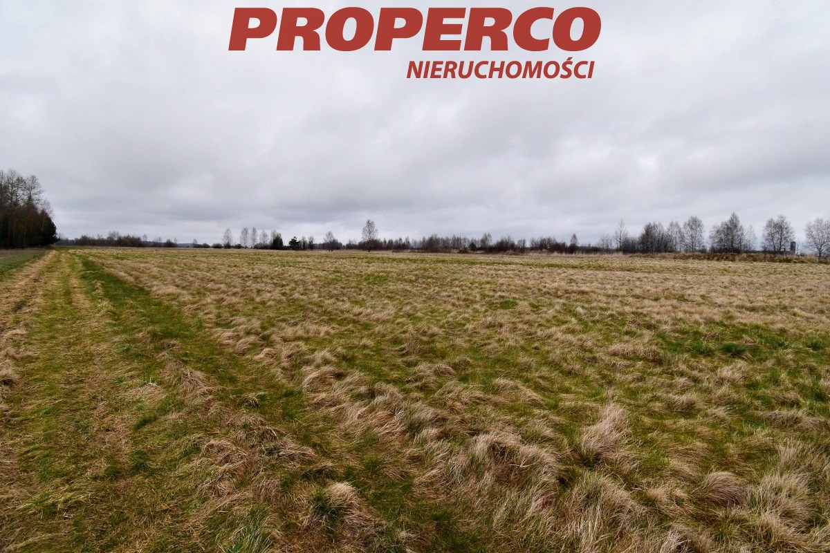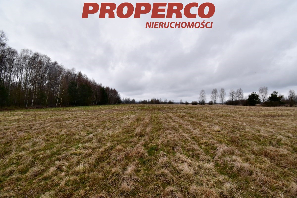 For sale: a plot of land with an area of 21,600 m², located in Grzymałków, Mniów municipality. The plot is flat, in the second line from the asphalt road, undeveloped, and trapezoidal in shape.
