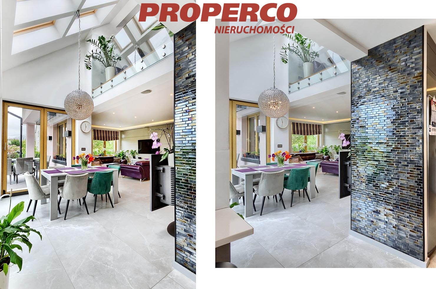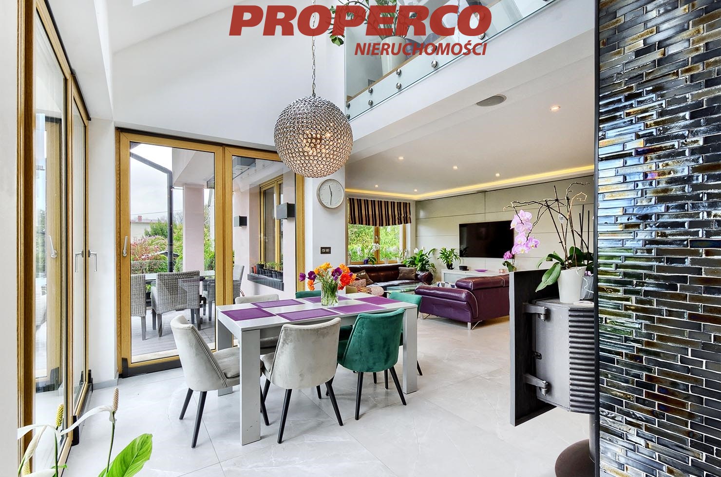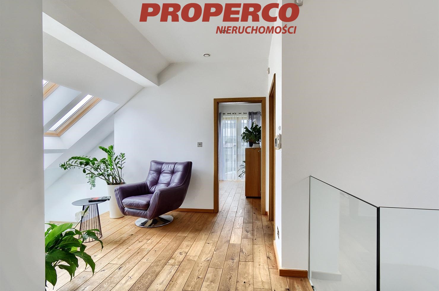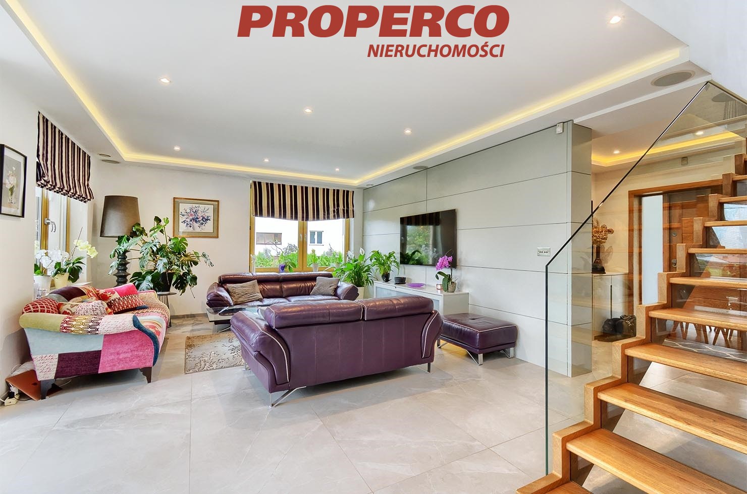 For sale: modern 6-room detached house with a usable area of 178.7 m² (total area 275.1 m²), located on the picturesque Aleja Lipowa in Oblęgorek, just 15 km from the center of Kielce. The property is situated on a 1,653 m² plot.