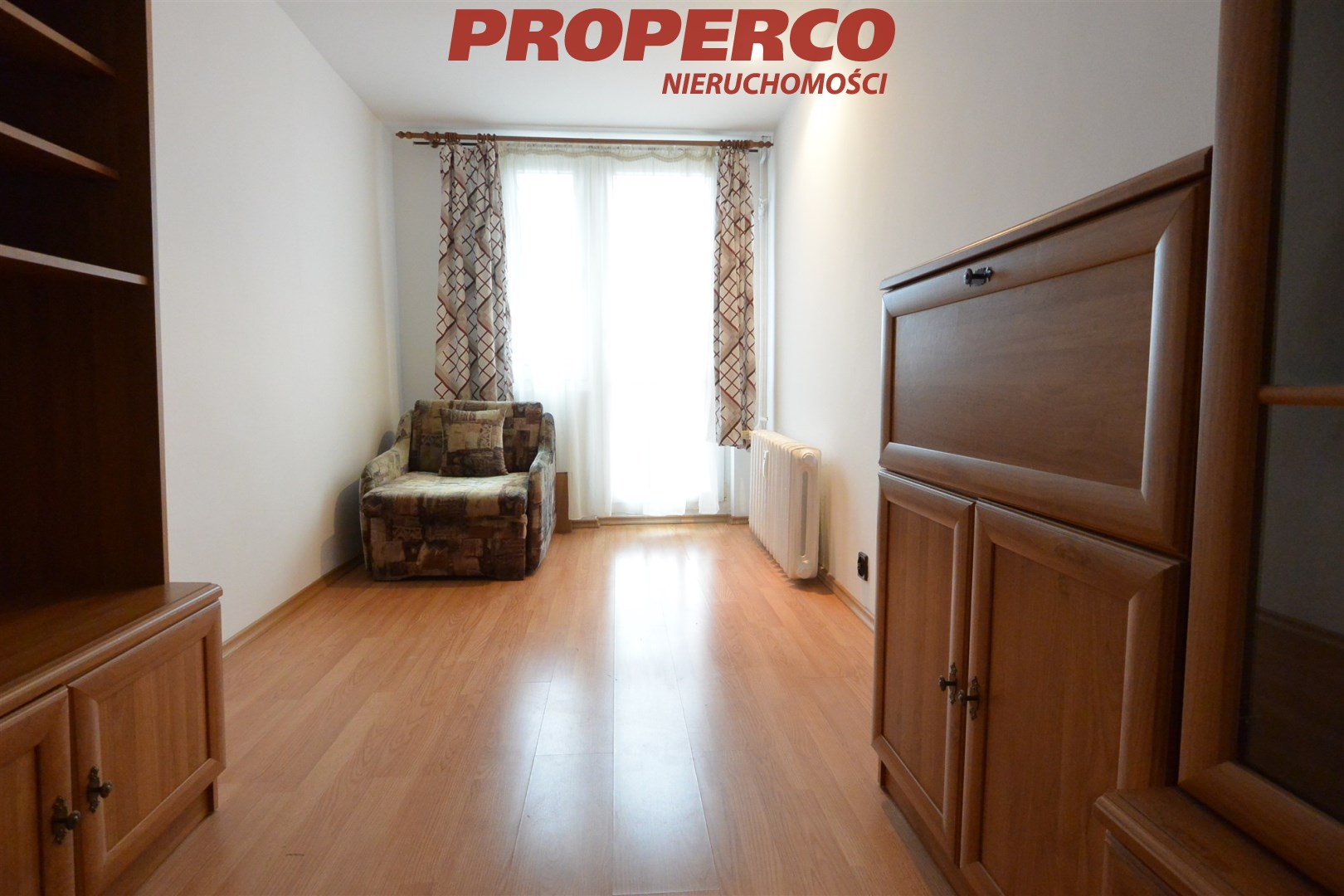 The apartment is single-sided, with an eastern exposure, offering a view of the city park and the panorama of Kielce.