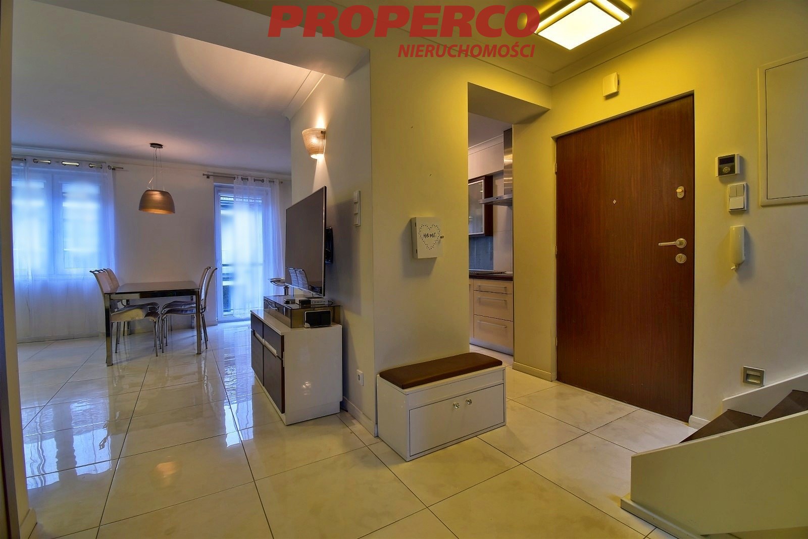 For sale a fully furnished, two-level apartment with an area of 94.5 m2 located on the 1st and 2nd floors of a 2-storey building from 2012, situated in a quiet, gated estate of terraced apartments at Chodkiewicza Street in Kielce.