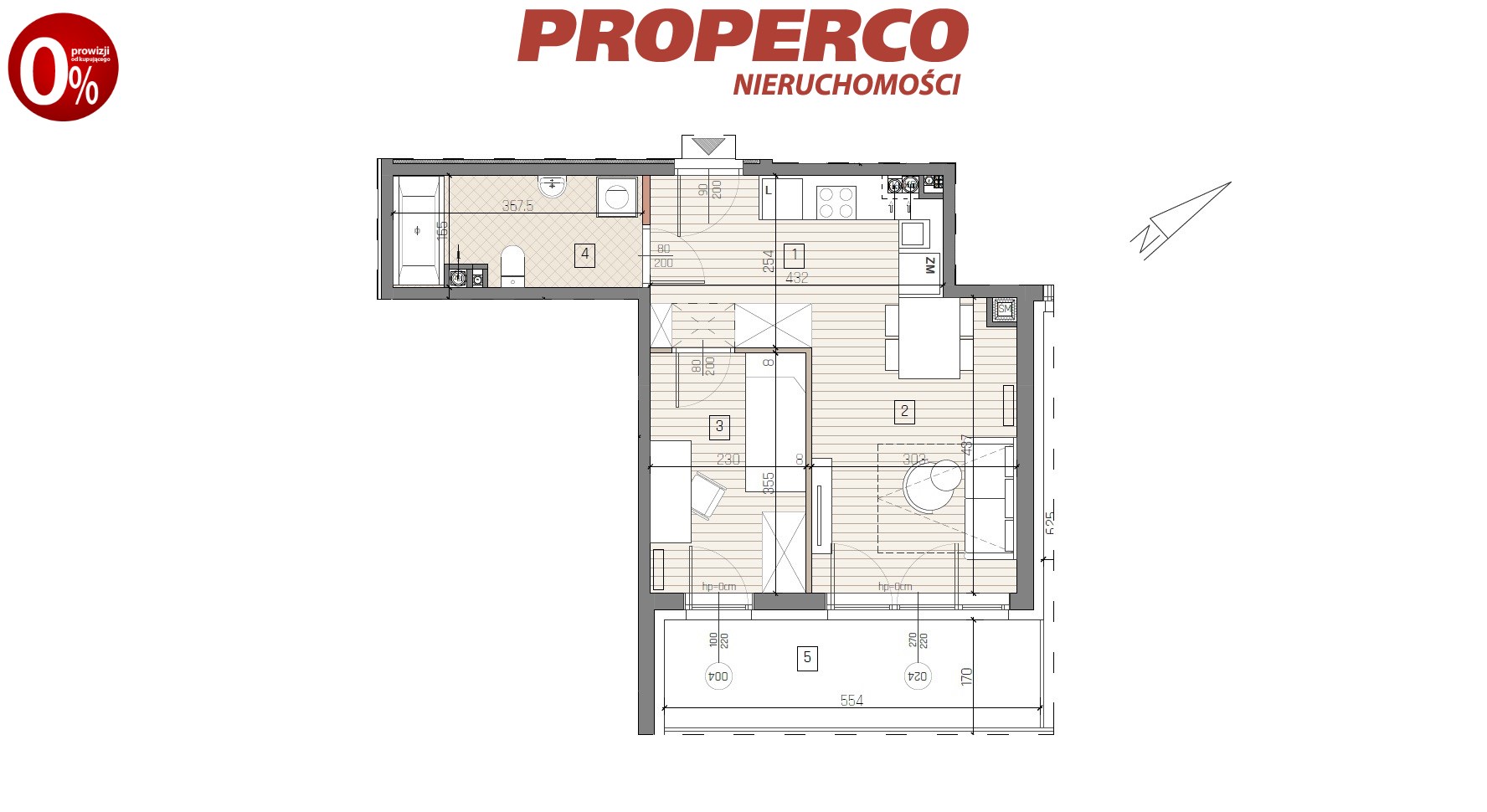 For sale a 2-room apartment with an area of 35.92 m², located on the 1st floor in a modern development in Jędrzejów. The unit is in developer standard.