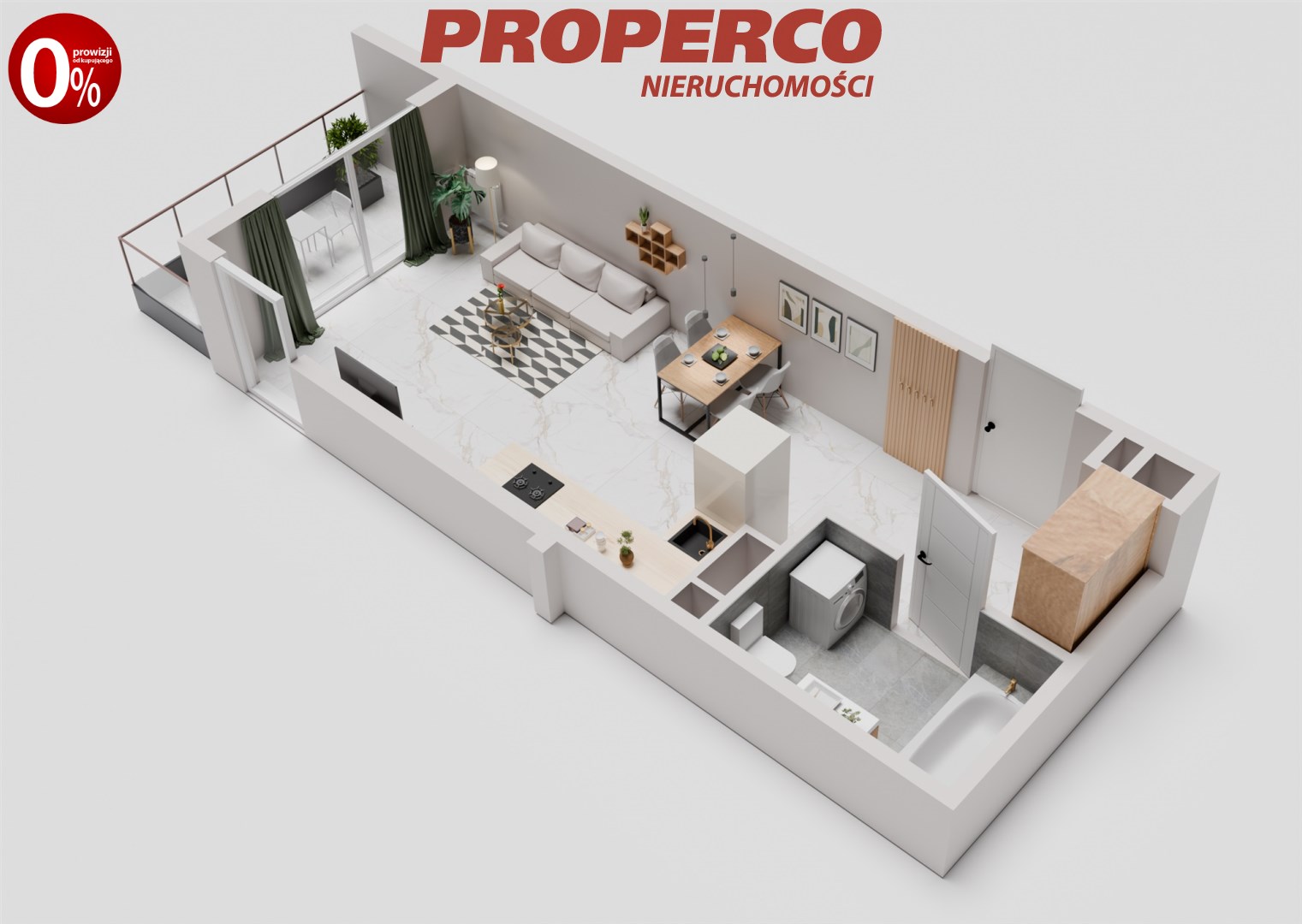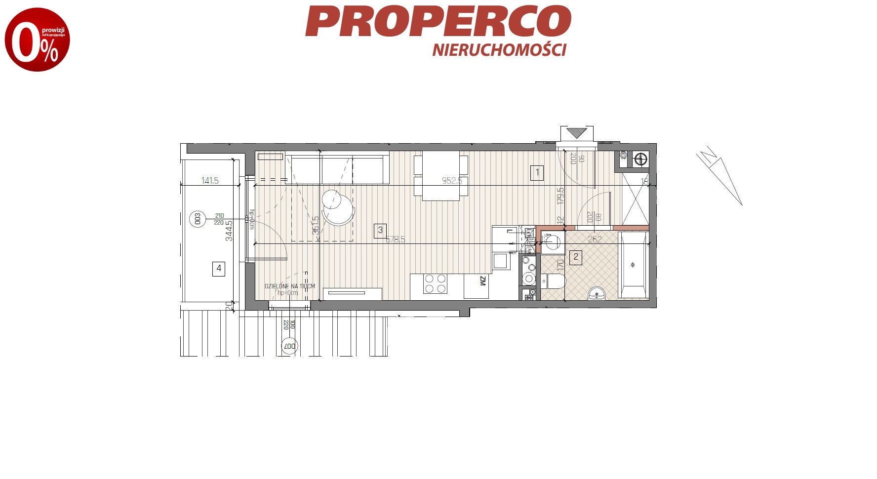 For sale: a 1-room apartment with an area of 32.48 m2, located on the 1st floor in a modern development in Jędrzejów. The unit is in developer standard.