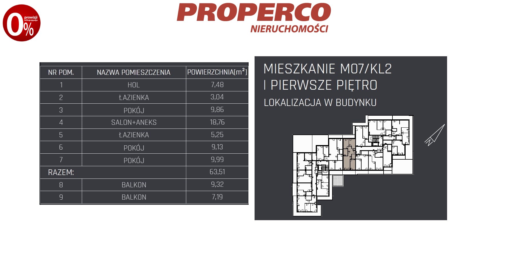 For sale: a 4-room apartment with an area of 63.51 m², located on the 1st floor in a modern development in Jędrzejów. The unit is in developer standard.