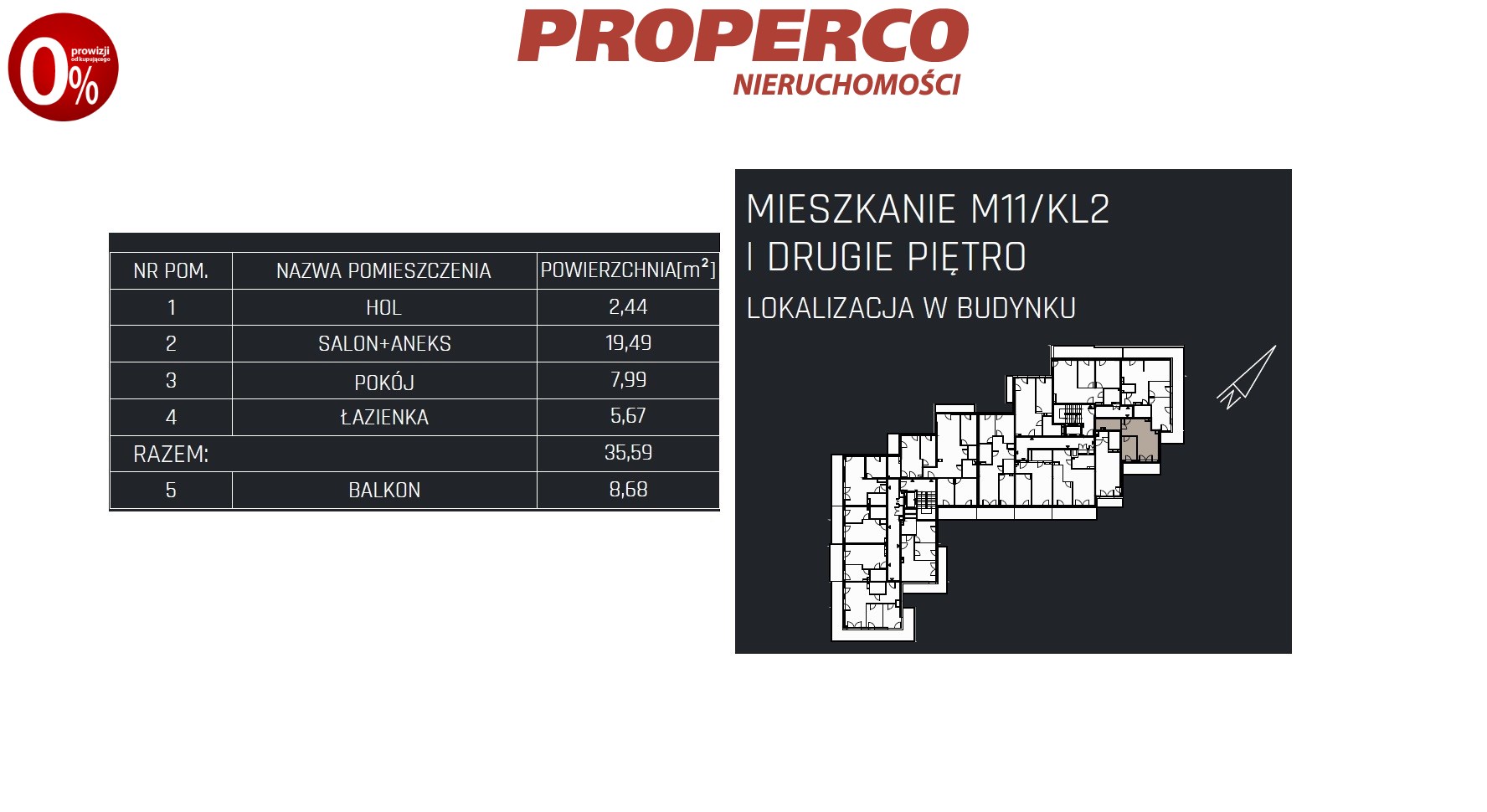 For sale: a 2-room apartment with an area of 35.92 m2, located on the 2nd floor in a modern development in Jędrzejów. The apartment is in developer standard.