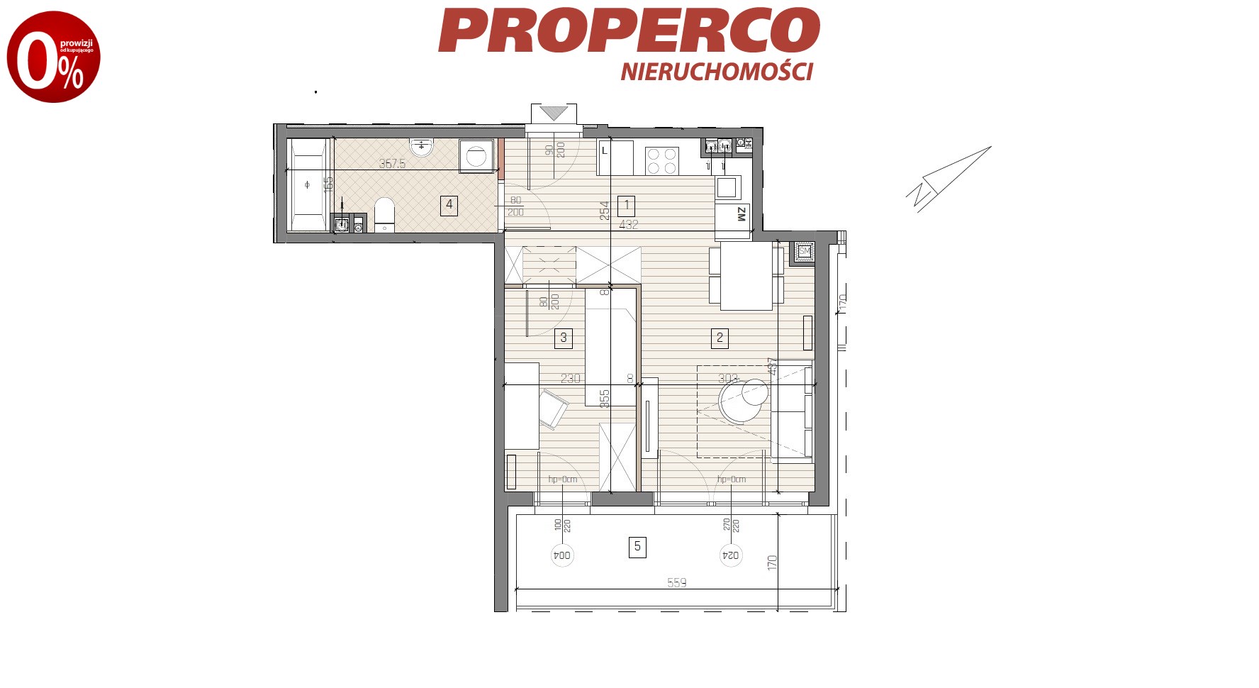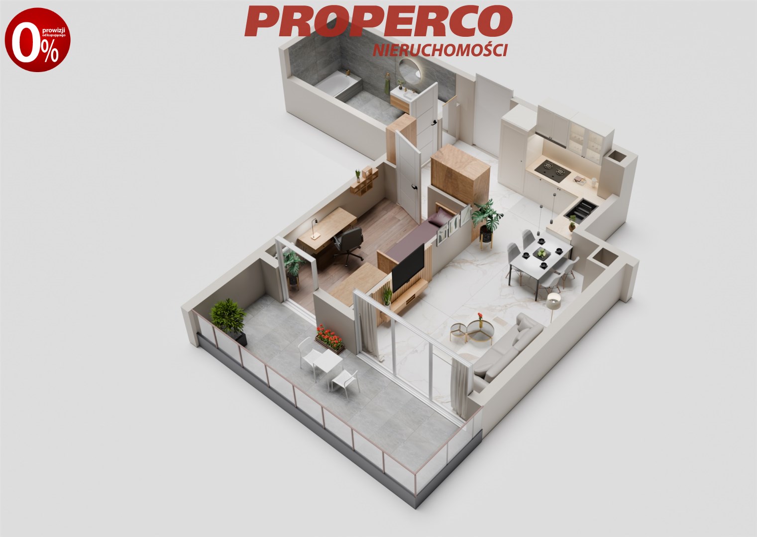 For sale: a 2-room apartment with an area of 35.59 m2, located on the 3rd floor in a modern development in Jędrzejów. The apartment is in developer standard.