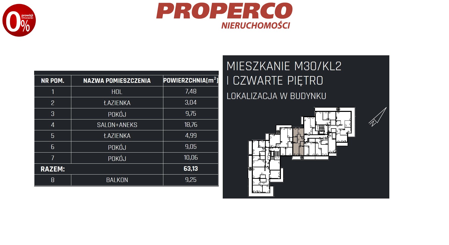For sale: a 4-room apartment with an area of 63.13 m2, located on the 4th floor in a modern development in Jędrzejów. The apartment is in developer standard.