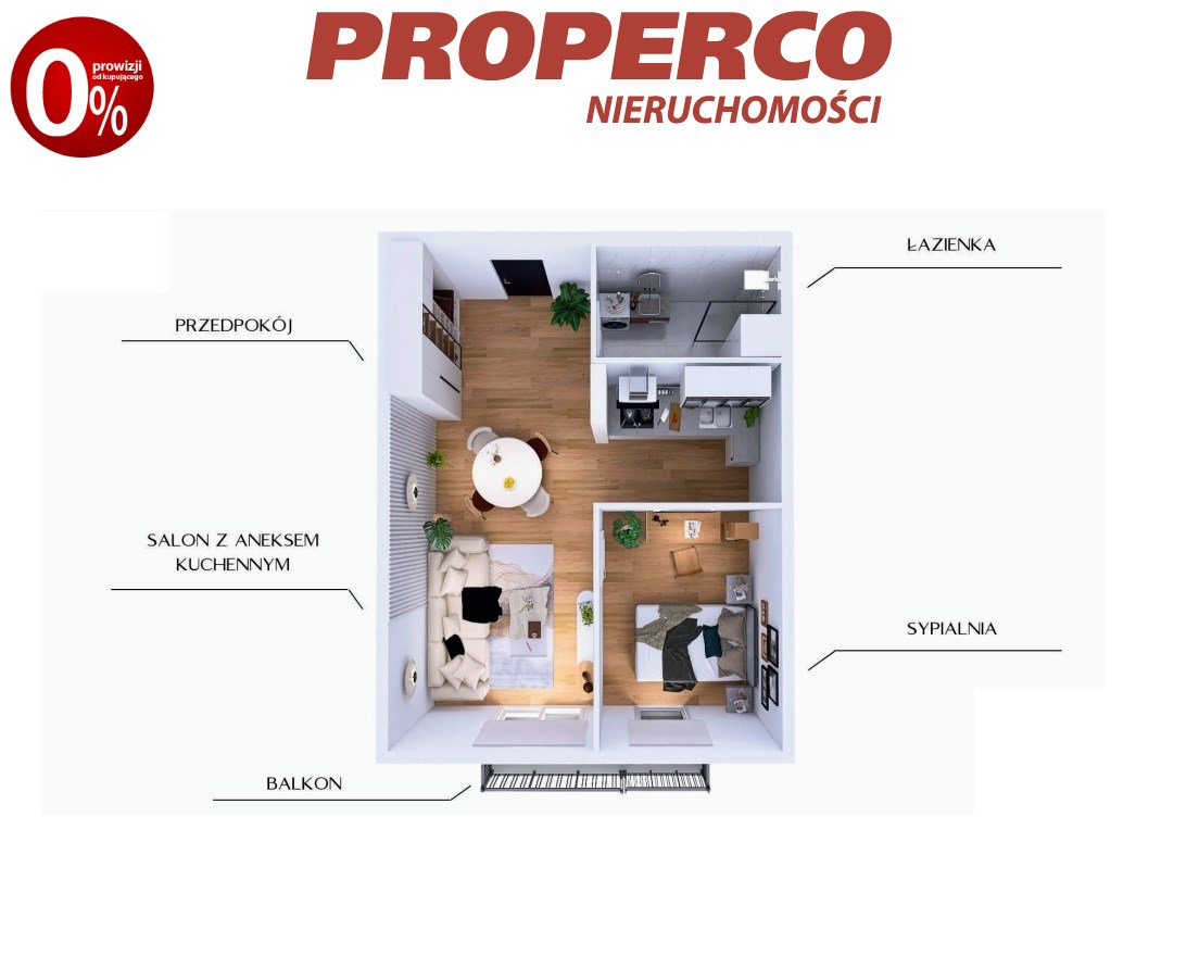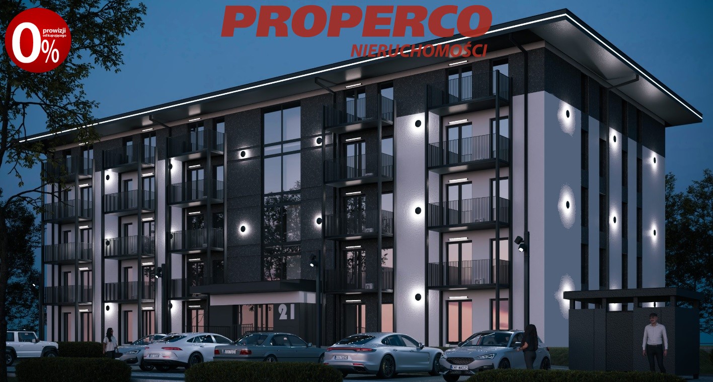 For Sale: A 2-room apartment with an area of 42.87m² located on the 1st floor of a new development project in Jędrzejów.