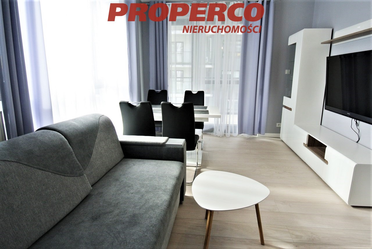 The apartment is situated on the 8th floor of a modern building completed in 2020. It consists of a bright living room, a bedroom, a functional kitchen, a bathroom with a toilet, a hallway, and a balcony. The apartment is fully furnished and equipped to a good standard, with the additional advantage of air conditioning providing comfort all year round.