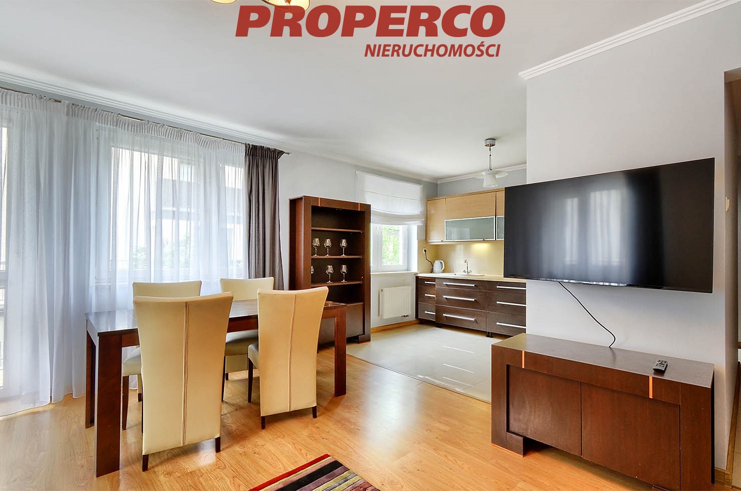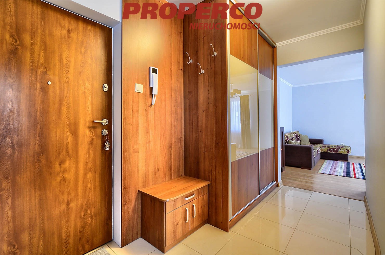 The apartment is bright and well-lit, with PVC windows and laminate flooring in the living areas; gres tiles in the kitchen and bathroom. Heating and hot water are provided by a gas combi boiler. The unit comes with a balcony.