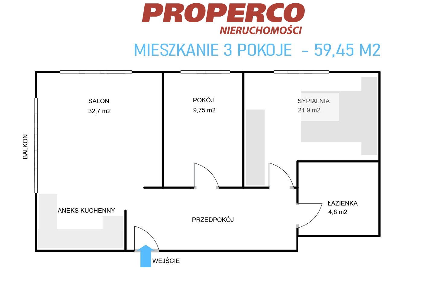 The apartment has an area of 59.45 m² and is aesthetically finished, with a modern kitchen fitted with high-quality household appliances from Electrolux and Samsung (induction hob, dishwasher, oven, fridge-freezer). All appliances are new, unused, and under warranty.