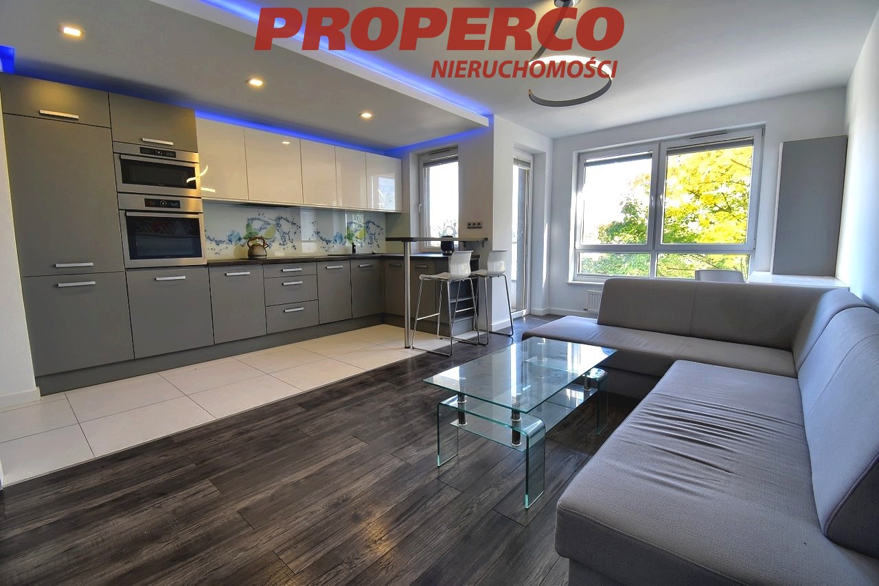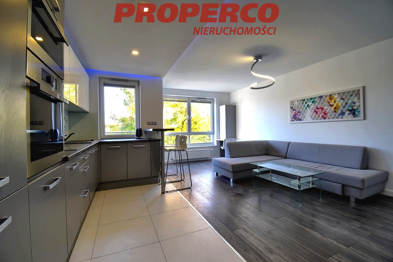The apartment is furnished and equipped with household appliances. Additionally, the apartment includes a parking space in the underground garage (included in the rental price). The apartment also has a spacious balcony. The area is fenced, and the building has an elevator.
